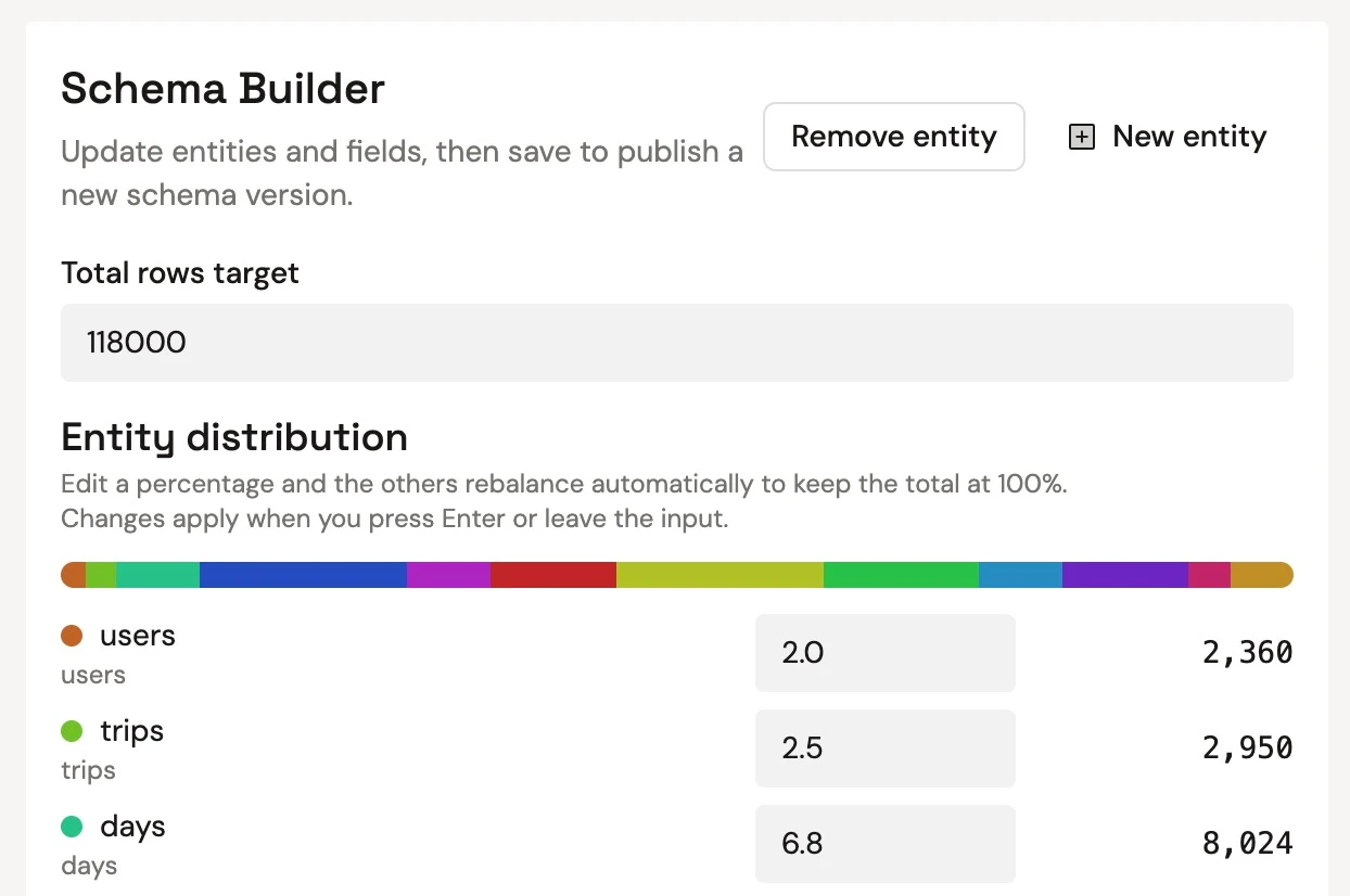 - Create seeded relational datasets that regenerate predictably